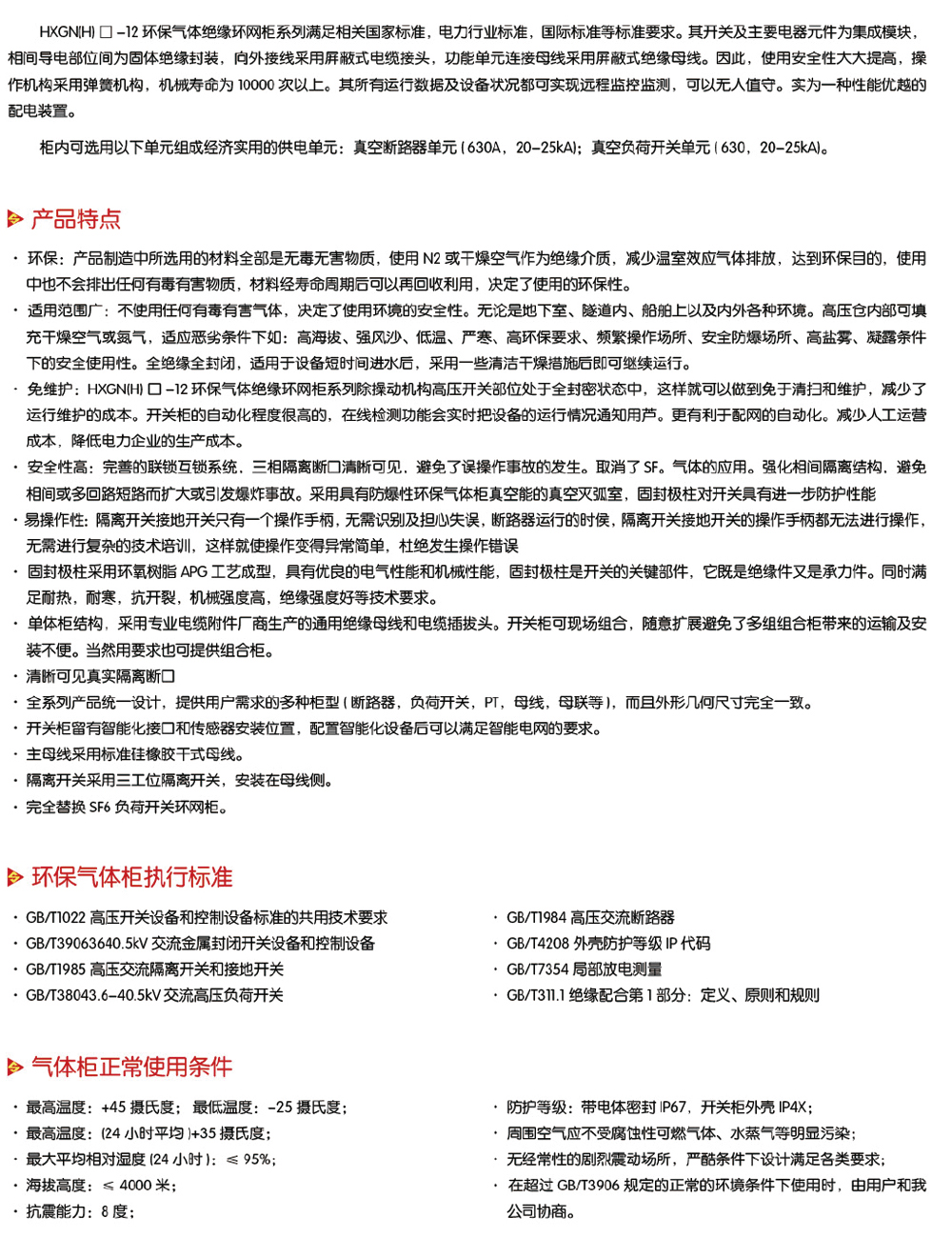 HXGN(H)-12環保氣體絕緣環網柜系列